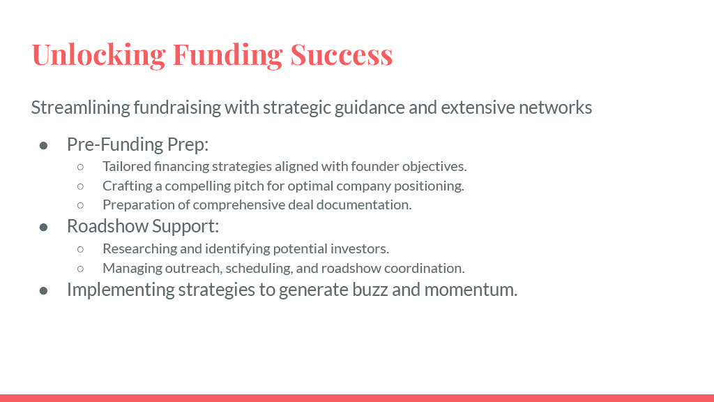 Navigating the complex world of fundraising in the United States can be daunting. We specialize in streamlining the process, providing strategic guidance, and leveraging our extensive network to increase your chances of securing investment exclusively for international clients.